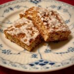 6. Whisk the icing sugar and lemon juice into a smooth glaze and brush it evenly over the slab while it is still hot from the oven.