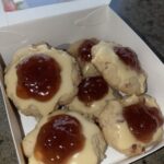5. Preheat the oven to 375°F (190°C), fill each indent with slightly warmed jam, and bake for 11 minutes or until the edges are just golden.