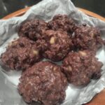 5. Using a tablespoon or small cookie scoop, drop rounded mounds of the dough onto the prepared paper and let sit at room temperature until firm.